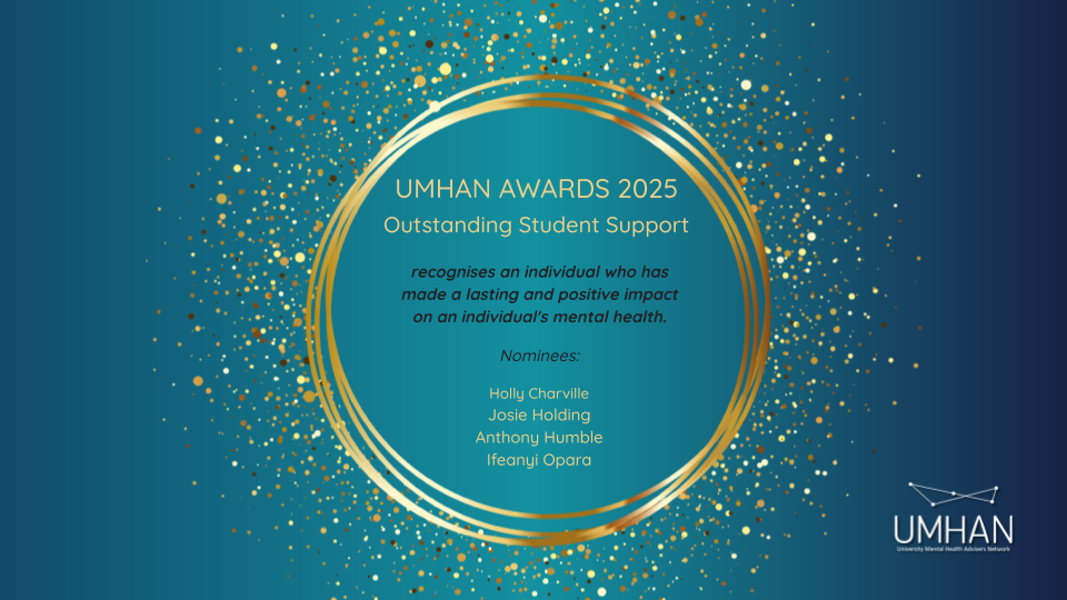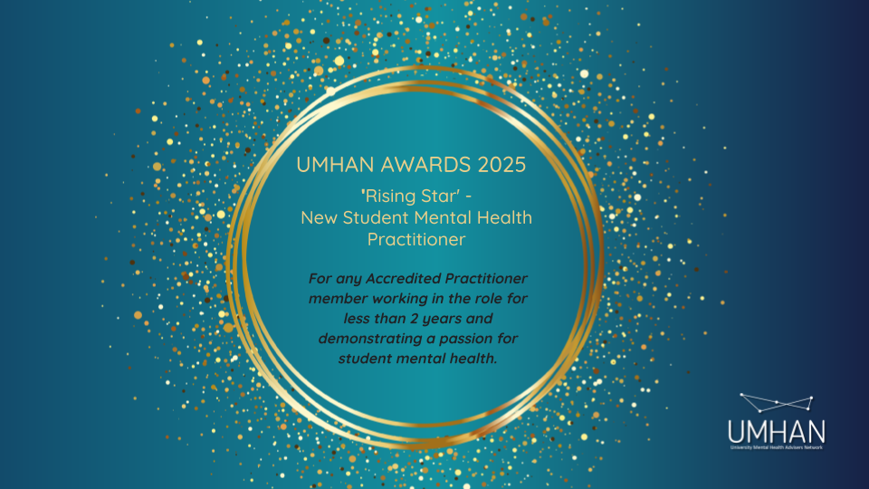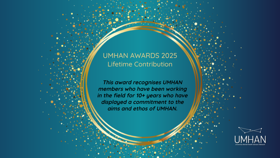 … has demonstrated exemplary professional practice across multiple areas of the UMHAN Framework, embodying the skills, knowledge and attitudes essential to high-quality mental health support the HE sector.