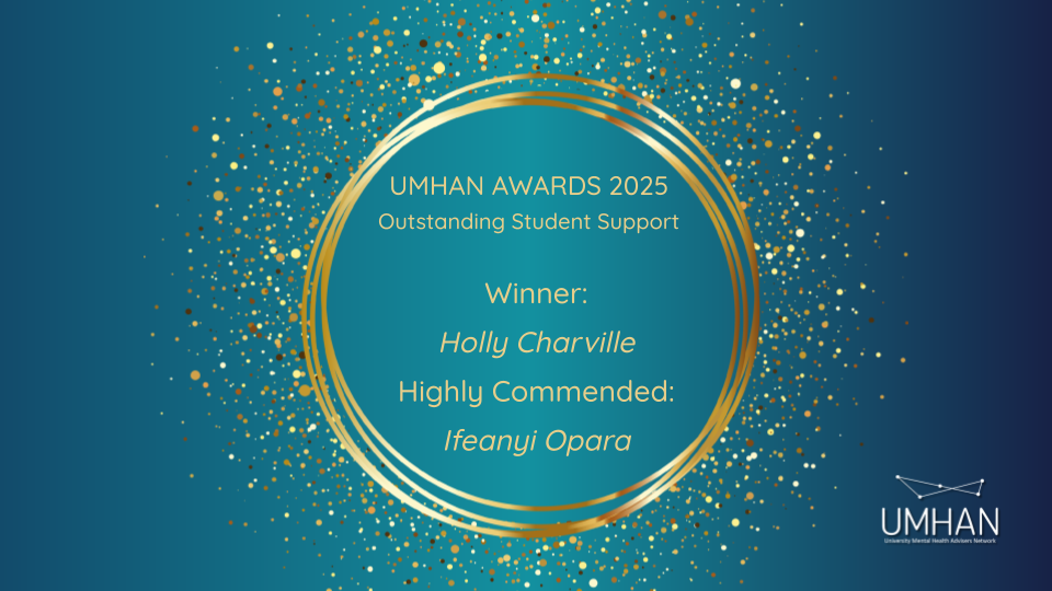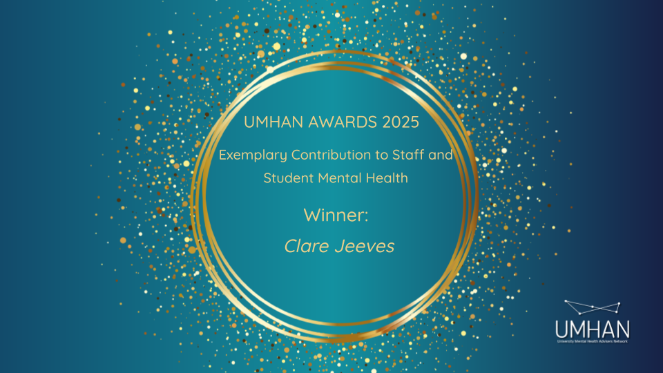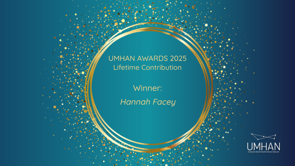 This award recognises UMHAN members who have been working in the field for 10+ years who have displayed a commitment to the aims and ethos of UMHAN. Nominations were asked to include examples of how the nominee has worked to ensure people with mental health conditions can fairly access and thrive in education.