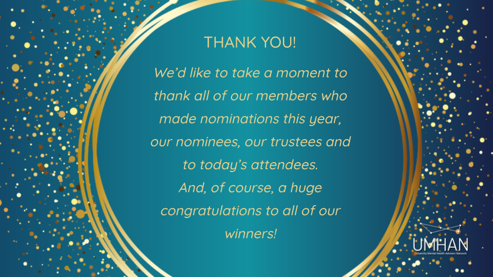 UMHAN's second awards ceremony took place online on Tuesday 16th December 2025. To watch the awards ceremony please go here and the recording is in the section marked 'UMHAN Awards 2025'.